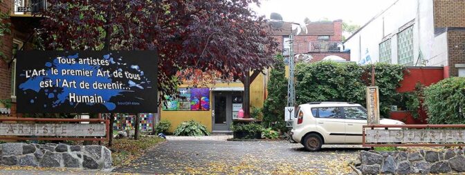 Devanture de l’atelier champêtre de Bourjoi artiste-ouvrier d’Hochelaga, l’Artrium.
